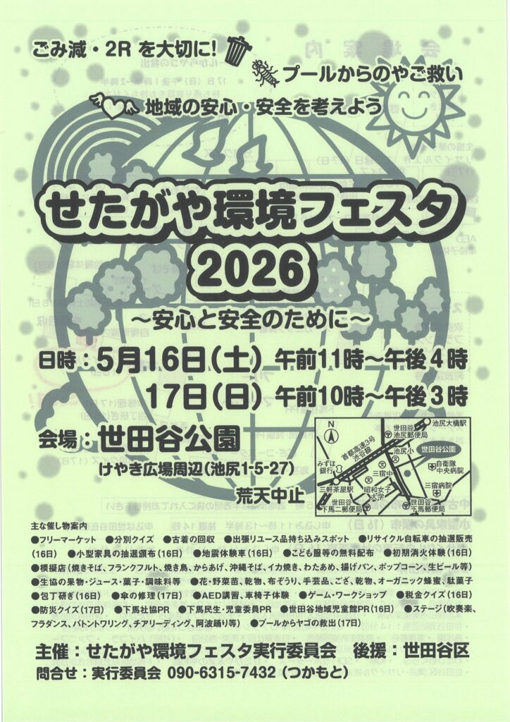 2026年5月16日(土)『せたがや環境フェスタ2026 at 世田谷公園』にて